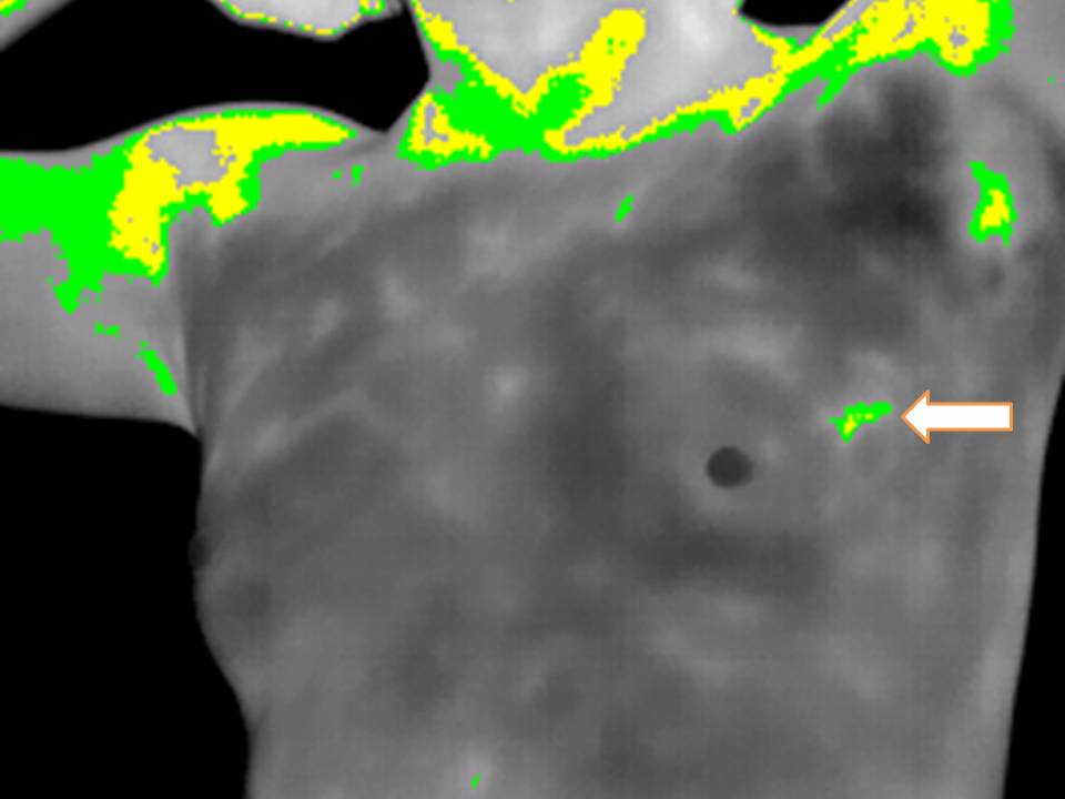 Infrared Analysis of the Anatomical Region. Clear Differences in Color are seen as Infrared Radiation Rises. Advanced and current State of the art IR detectors have a LARGER color scale, resolution and pixels.